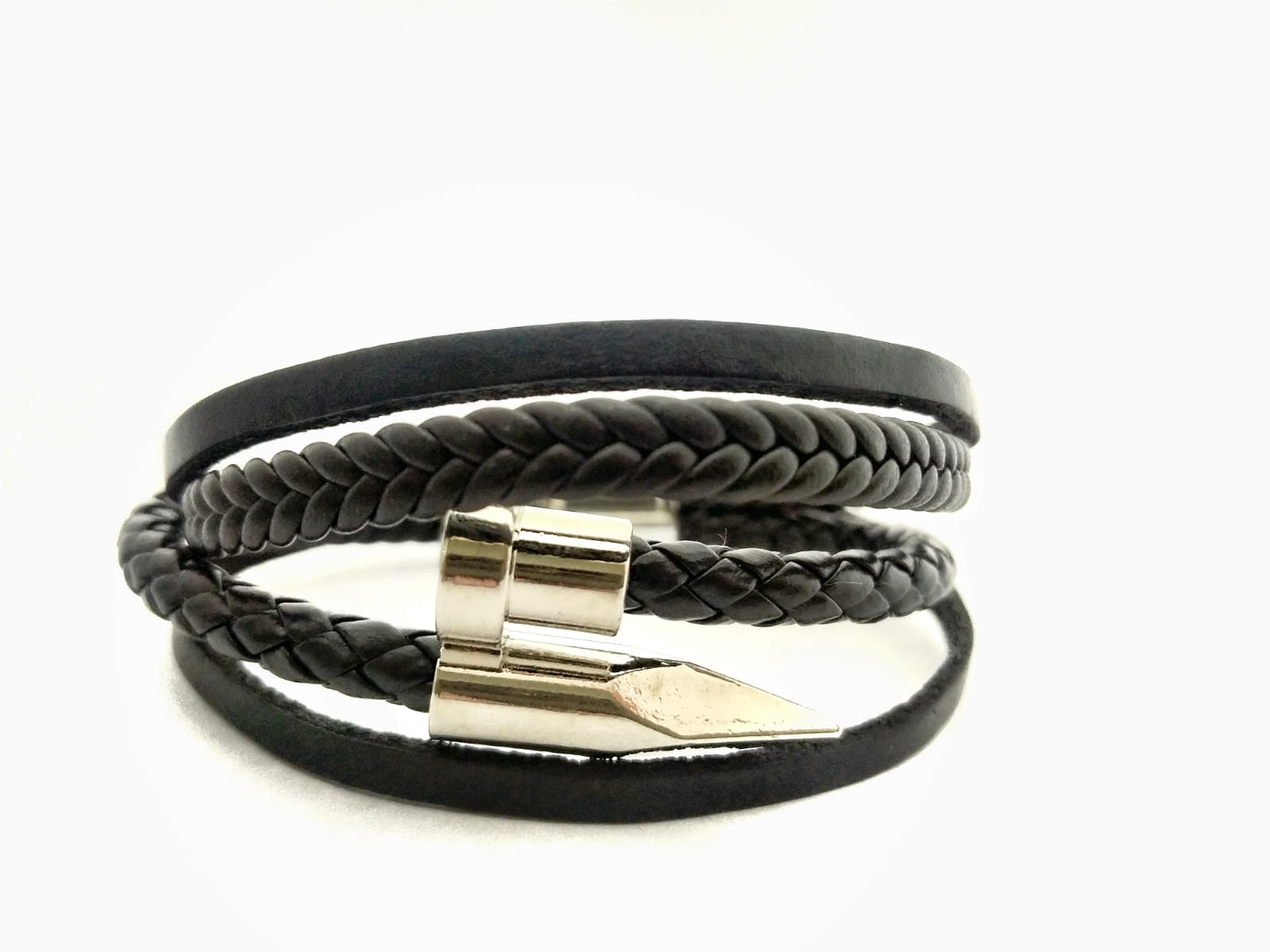 Add bold style to your wrist with this Black Leather Bracelet. Featuring four sleek leather strips and an easy connector clasp, it’s designed for comfort, durability, and everyday wear. A perfect mix of rugged and modern fashion that goes well with any outfit.